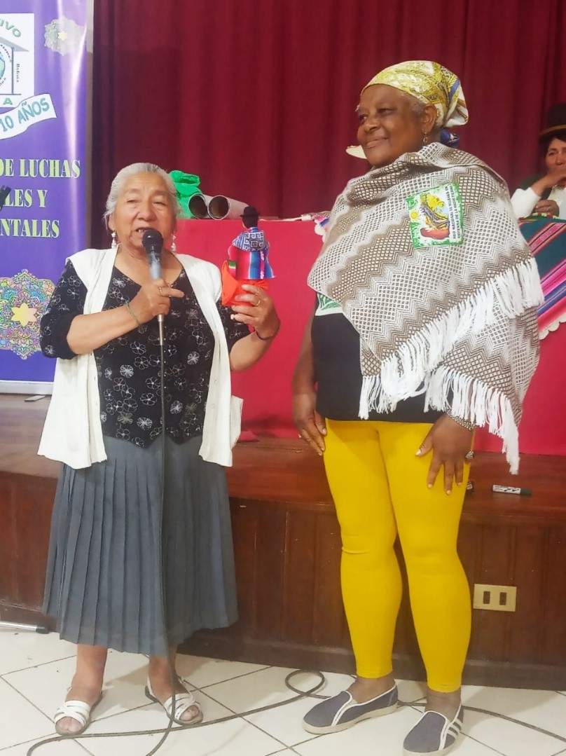 El día culminó con un concurso de talentos en el cual las defensoras de cada comunidad, demostraron sus capacidades de baile, canto y alegría, compartimos canto y bailes afroecuatorianos con la hermana Isabel y a ritmo de morenadas, con polleras de todos los colores, celebramos la lucha de las mujeres y su lucha por la vida. Al mismo tiempo se entregaba una ofrenda a la Pachamama agradeciendo la oportunidad de reuniros y pidiendo mayor fuerza para el futuro.